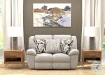 Trifecta features a soft low-pile chenille fabric and comfortable padded arm design. This Reclining Sofa group offers a full assortment of features that include Rocking Loveseat, Swivel Recliner, and a convenient Drop Down table on the sofa. Power upgrade is available on all items, and two colors are offered: Nature and Smoke.