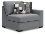 This left-arm facing corner chair is made with Next-Gen Nuvella™ (polyester) fade-resistant, washable fabric. Fully finished on all sides, it pairs with other items in the series to make a modular sectional.
